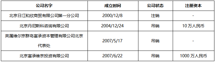 2007年5月17日,王珂出任英属维尔京群岛富承资本管理有限公司北京代表处的法定代表人和首席代表;同年6月22日,他还以监事和50%股东的身份,参与北京富承维京投资有限公司的经营。