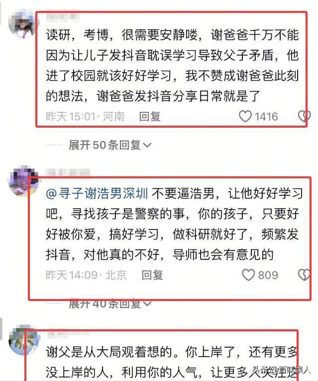 毕竟对于他来说,目前还是学生,后续还要考博,精力应该放在学业上,对此,谢爸爸认为不妥,他觉得这么多人关心他,他必须分享自己的日常,要对得住关心这个群体。