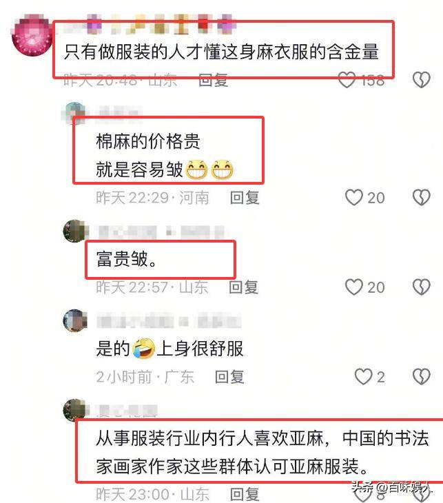 而有明白人却表示,只有真正做服装的人,才懂得他身上的这套衣服,他这套衣服是亚麻布料,属于高档货,价格都不便宜,因为在行业里,这叫做富贵皱。